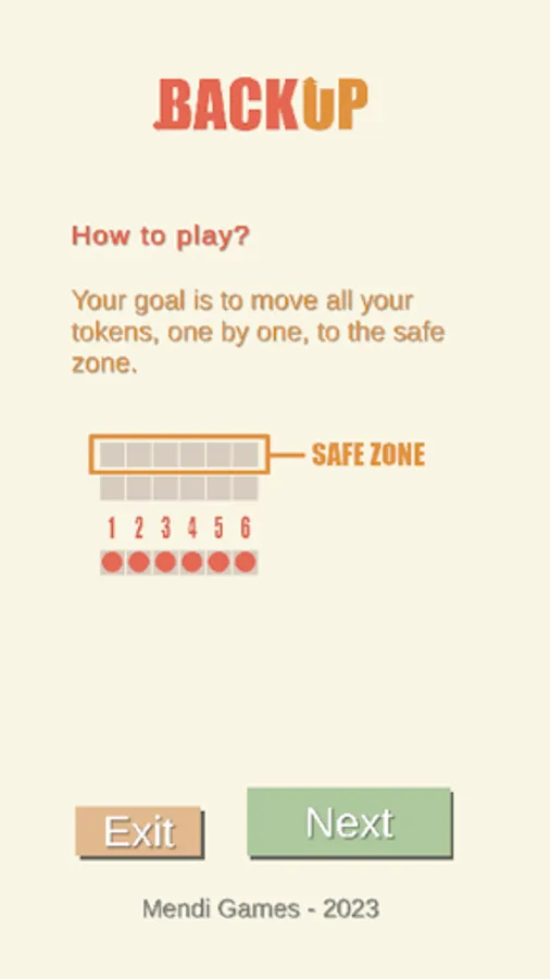 Back Up is a board game where you play with dices and 6 tokens vs another player.