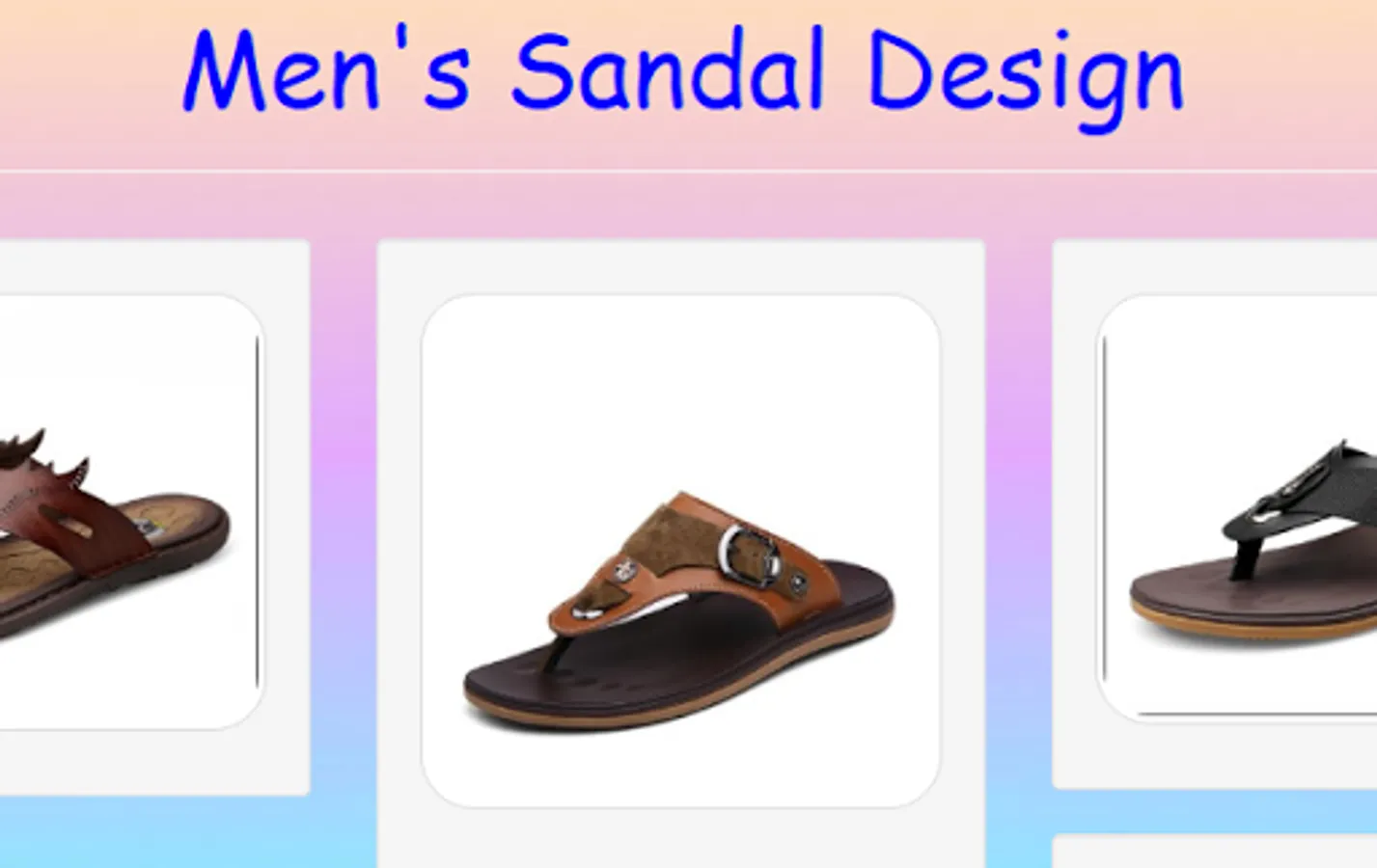 Sandals are one model of footwear that is open at the toe or heel of the wearer. The base is connected by a strap or belt which functions as a clamp on the fingers, instep, or ankle so that the sandals are not separated from the wearer's feet. You can use this application as your inspiration when choosing the design of men's sandals. All you can immediately choose as you wish. good luck