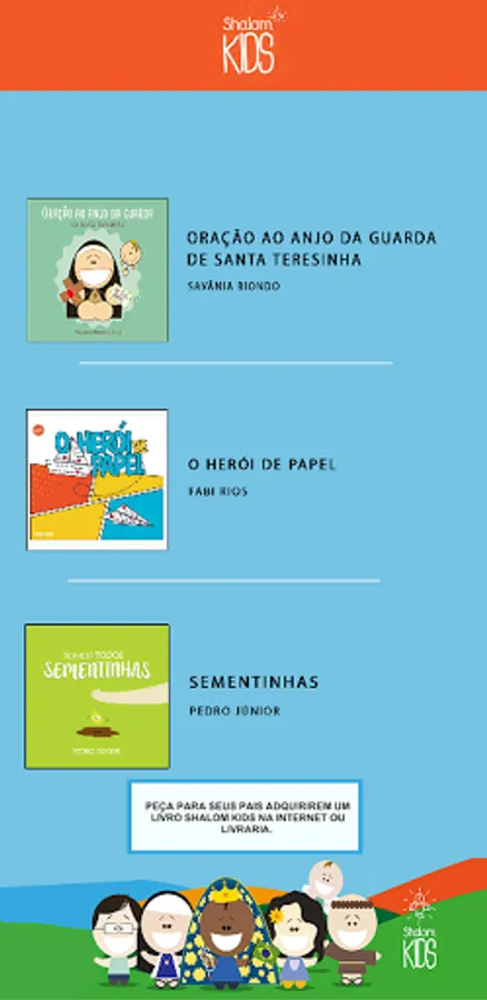The Shalom Kids app has the recognition functionality of some pages of books from Editora Shalom.