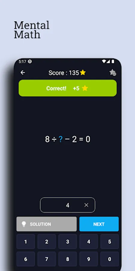 Step into a world where you'll have to solve math problems. Compete with your friends to see who can score the most points and take 1st place on the leaderboard! With a wide variety of challenges to keep you engaged, Mental Math is the perfect game to test your mental agility and critical thinking skills.