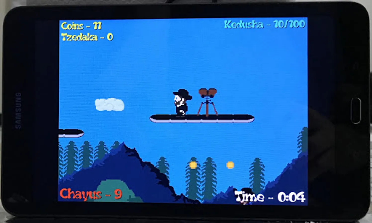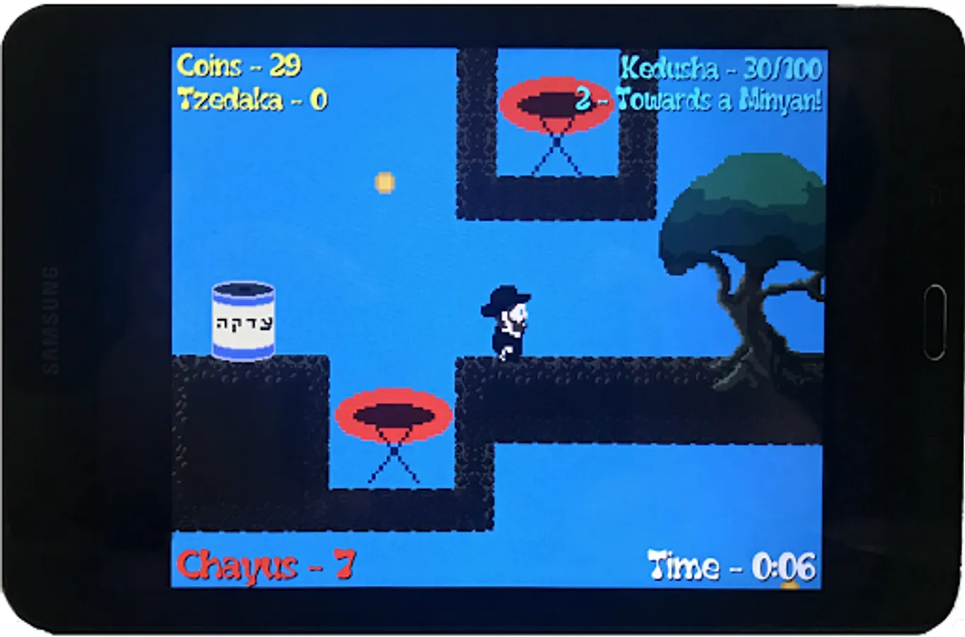 Amazing Jewish Adventure Platformer Game about searching for a Minyan with exciting ways to move around and challenging obstacles!