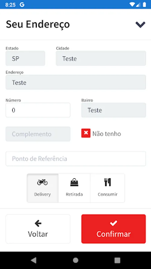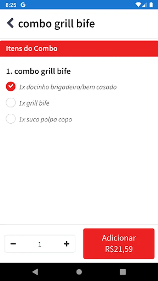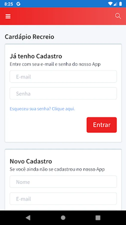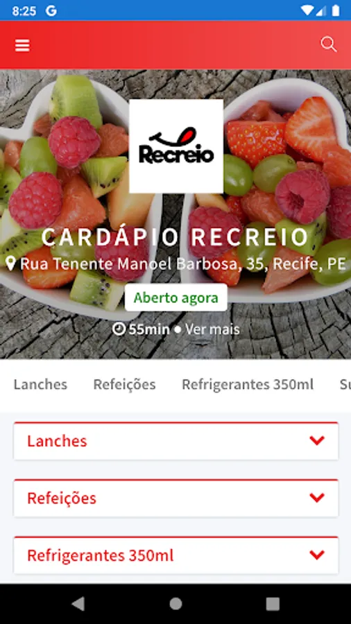 Menu of snacks and meals from the canteen of Colégio Motivo de Boa Viagem