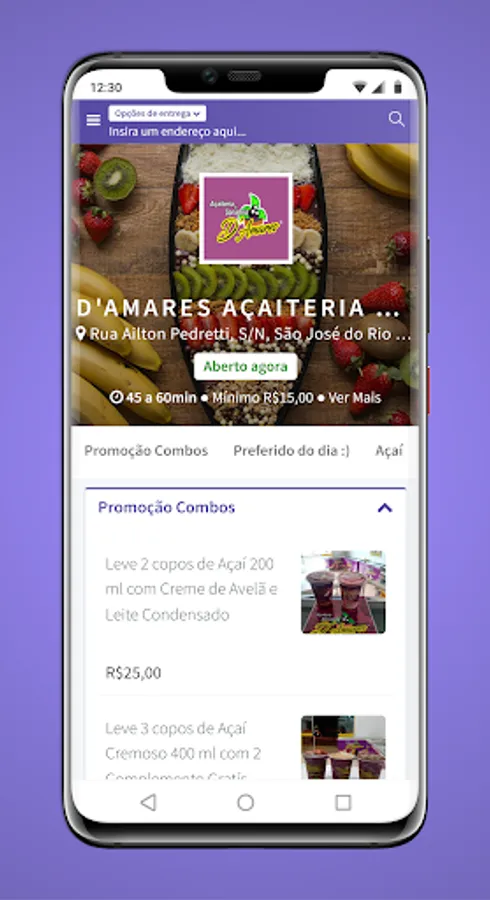 Meet our menu, up to four brands of acai for you who likes quality and also fair price, place your order with all convenience and practicality.