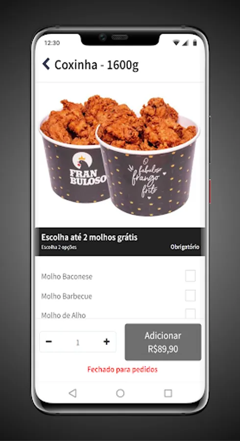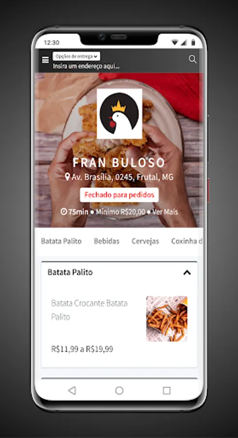 App to order directly at Fran Buloso restaurant in Frutal-MG.