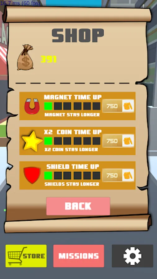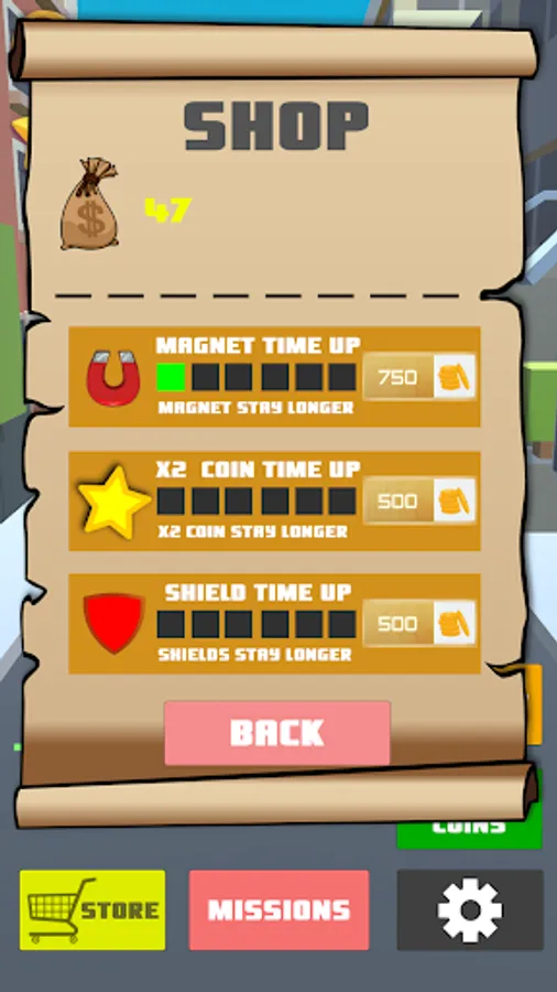 There is a shop where you can upgrade your Power Ups for some Coins.