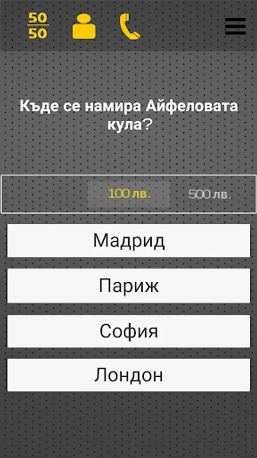 If you know an interesting question that is not in the game can send your question by clicking "Ask a Question" and your question will be included in the game after it is approved.