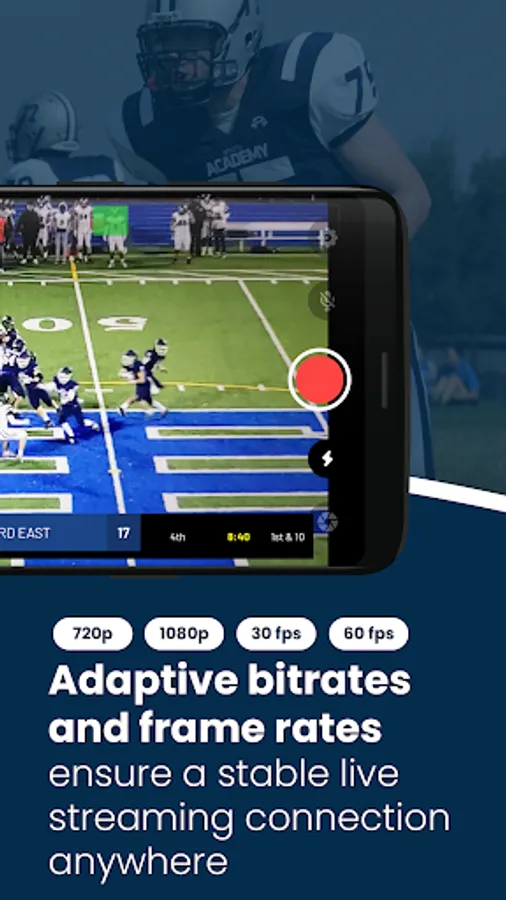• Adaptive bitrates and framerates ensure a stable live streaming connection anywhere