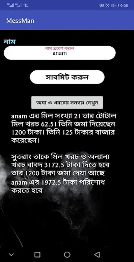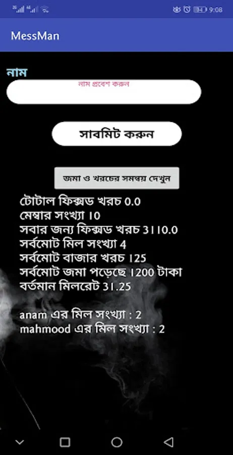 MessMan is an android application by which one can easily calculate and keep the records of mess calculations without using khata. It can be used for group of people or an individual.