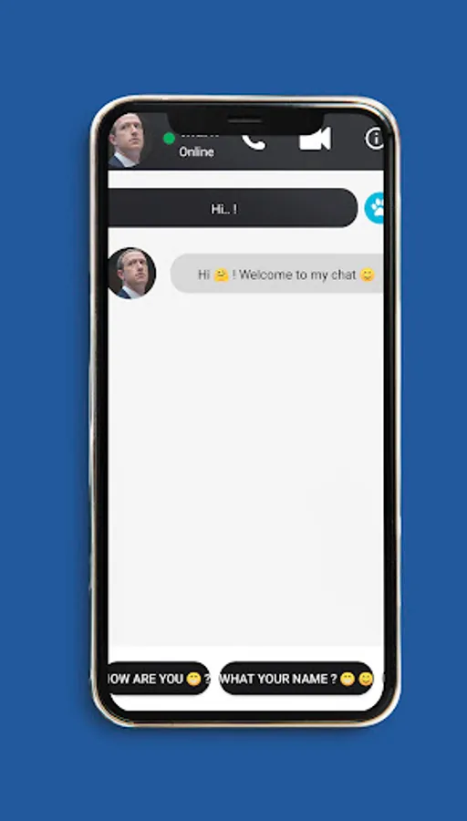 Prank your friends and call Mark Zuckerberg and do real texting in front of them in this Meta : Fake Video Call and live chat app. You can now impress your friends and trick them by showing Mark Zuckerberg is actually responding your calls and chat messages. You can say anything to the your celebrity and Mark will love you back as well.