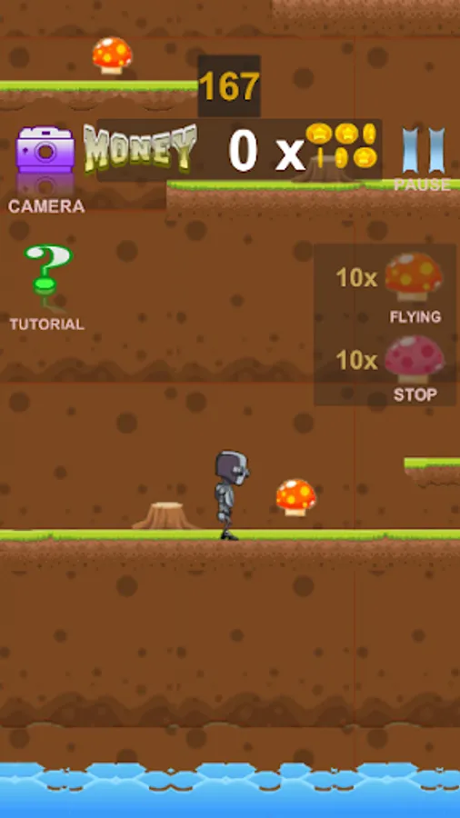 Vous devez récupérer la clé de votre maison dans le monde souterrain avant de rentrer chez vous pour éviter la montée de l'eau du à l'inondation fatale. Et cela avant la fin du temps imparti. Servez vous des bonus champignons pour faciliter votre ascension et votre survie. Bien utile, ces bonus champignons sont accessibles durant la partie et peuvent être acheter dans le SHOP via les pièces que vous ramassez. Soyez vigilent entre obstacles pour vous ralentir, ceux mortels dans le monde souterrain, et le temps imparti faites preuve de stratégie et de dextérité.