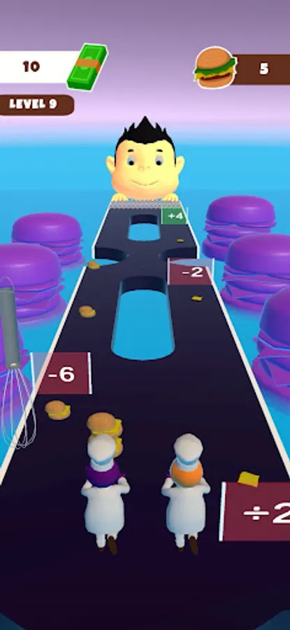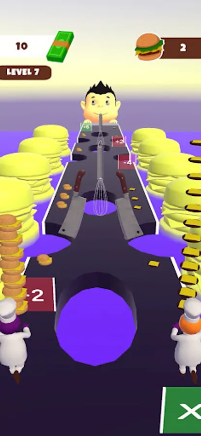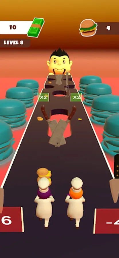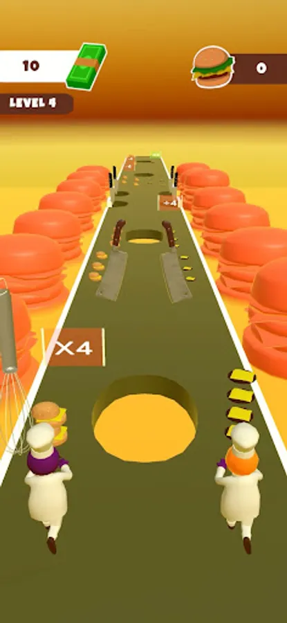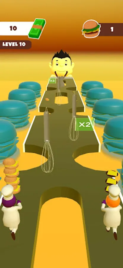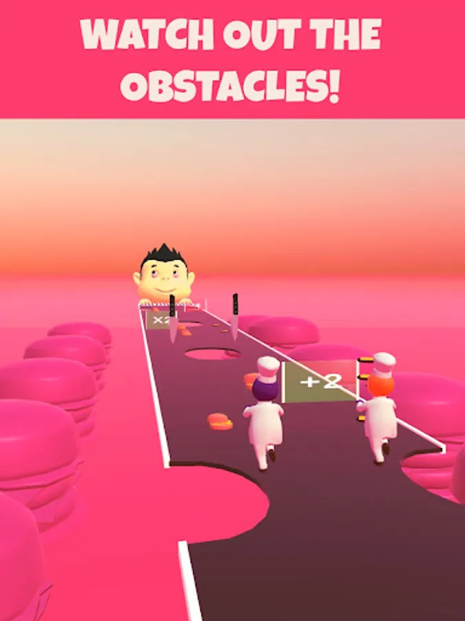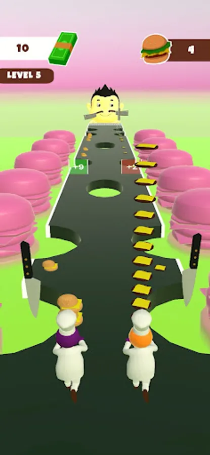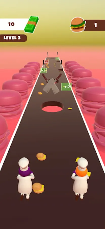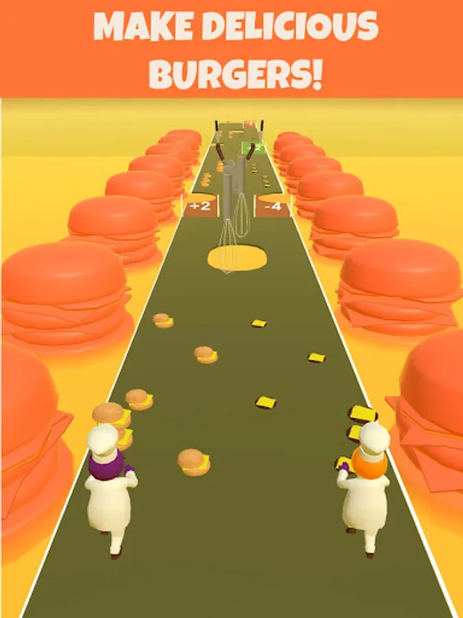 Everyone loves burgers. Our two chefs will cook you the best burgers. Collect bread and meat without without hitting obstacles. Collect the most burgers and feed the kid!