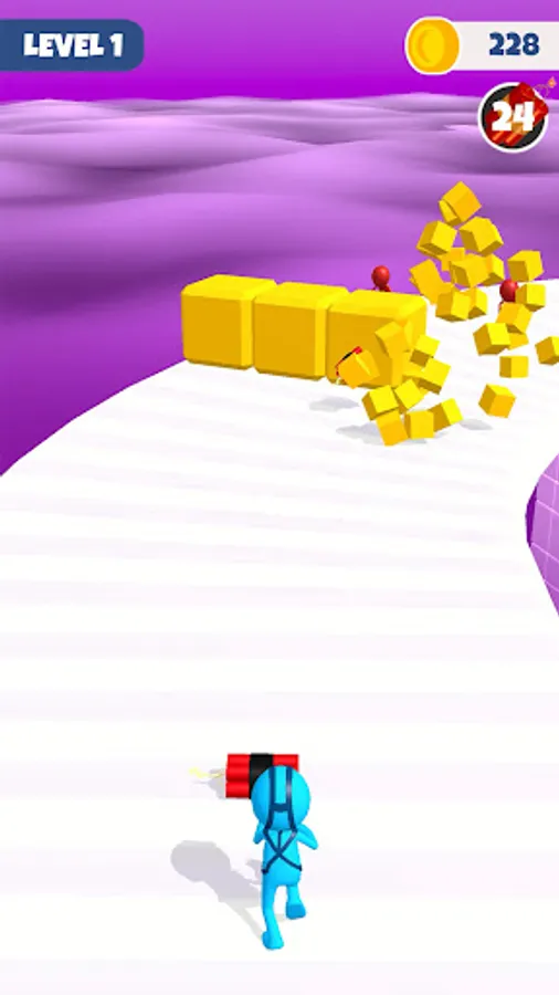 Blast the cubes and complete the parkour. Watch out for zombies! Never let them bite you! Be careful where you throw the bombs.