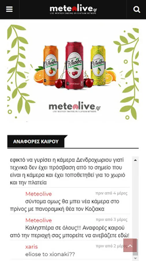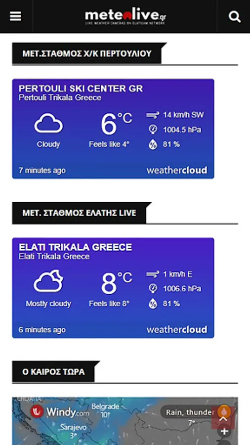 Το meteolive.gr είναι ερασιτεχνική ιστοσελίδα. Ο σκοπός δημιουργίας της είναι η ανάδειξη της φυσικής ομορφιάς του τόπου μας αλλά και η παρουσίαση σε πραγματικό χρόνο της εξέλιξης του καιρού με εικόνα άλλα και η δημοσιά χρήση προς όλους ελευθέρα για την πρόληψη ακραίων καιρικών φαινομένων Οι κάμερες που φιλοξενούνται στο meteolive.gr δεν αποτελούν ιδιοκτησία του και τοποθετήθηκαν σύμφωνα με όσα ορίζουν ο Ν.2472/1997 περί προστασίας του ατόμου από την επεξεργασία δεδομένων προσωπικού χαρακτήρα, καθώς και η υπ'αριθμ. 1122/2000 Οδηγία της Αρχής Προστασίας Δεδομένων Προσωπικού Χαρακτήρα, με τις ισχύουσες τροποποιήσεις τους,Οι ιδιοκτήτες-χειριστές των καμερών οφείλουν να συμμορφωθούν με τις κείμενες διατάξεις και τους κανόνες της παρούσας ιστοσελίδας,Με απόλυτο σεβασμό στα προσωπικά δεδομένα των πολιτών, επιλέγουμε οι κάμερες που μας παρέχονται από το κοινό να είναι αυστηρά καιρικές ή προβολής τοπίων φυσικής ομορφιάς. Σε περίπτωση που οποιοσδήποτε θεωρεί ότι προσβάλλεται η ιδιωτικότητα του μέσα από την παρουσίαση των καμερών παρακαλούμε να μας το επισημάνει κ΄ εμείς θα προβούμε άμεσα