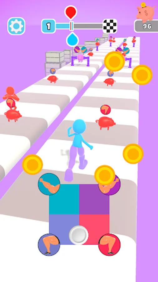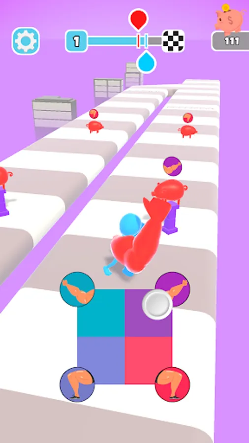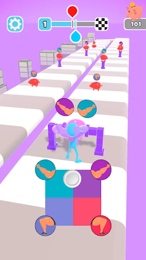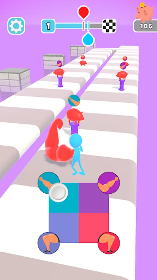 Use the colorful joystick graph in the UI to control your muscles according to money banks