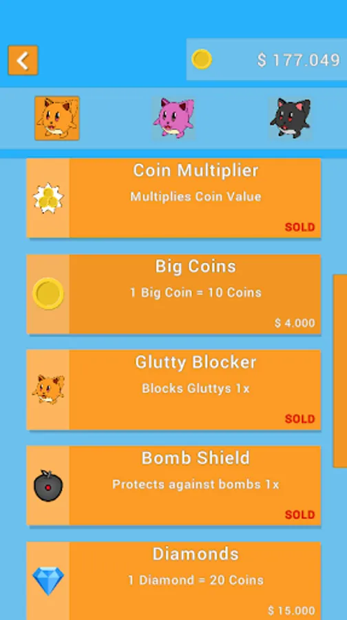 Help Glutty to reach the greatest height, collecting food, coins and avoiding bombs and enemies.
