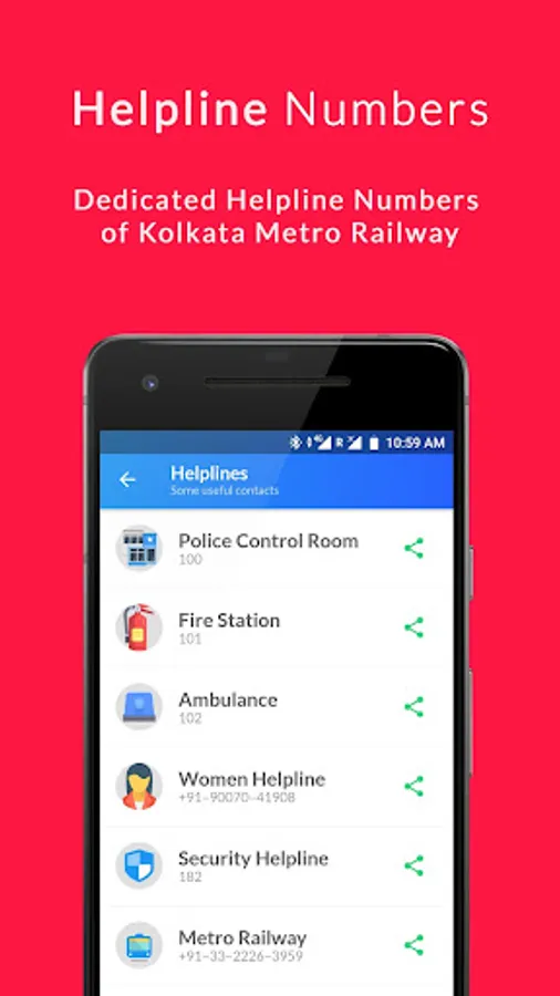 HELPLINE: displays all necessary helpline numbers needed in case of an emergency