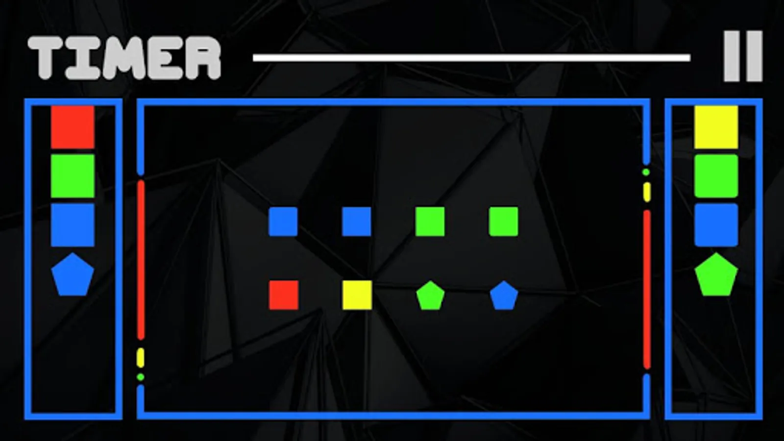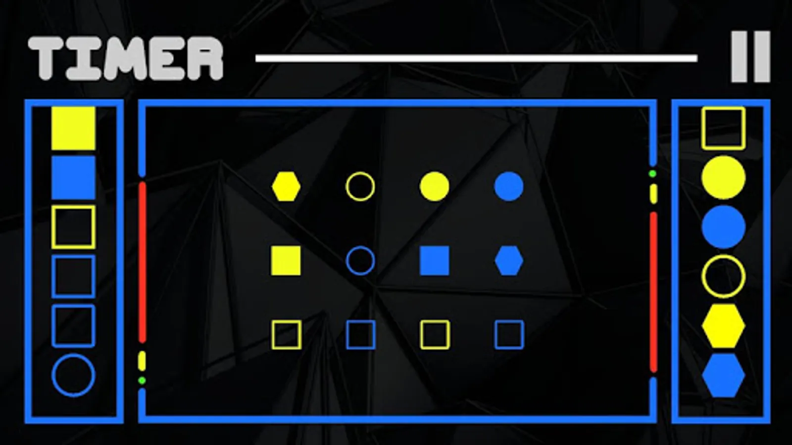 The player needs to go through a series of levels to complete the game. In each level, the player will be given a grid of shapes. In this game, player need to match all of the shape given in the grid with the shape outside the grid. There will be the time running to match all of the shape. Each level have its own difficulty, the higher level you reach, will be harder to pass.