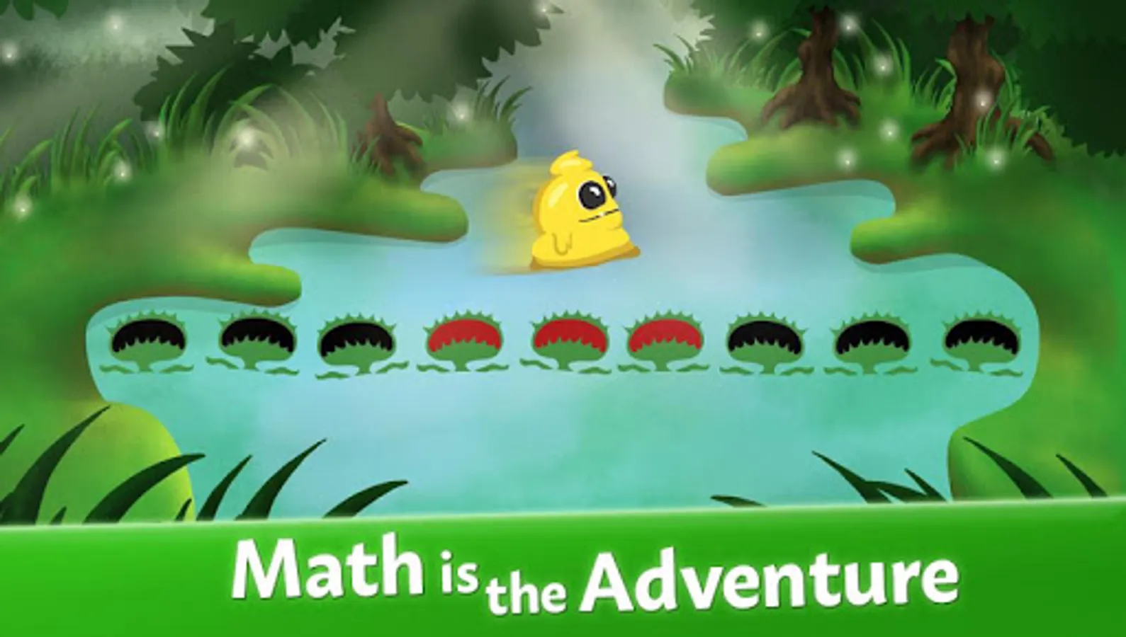 Your friendly yellow blob will take you on a silly quest, filled with mishaps and unfortunate events. He does not take himself too seriously, but he is dead serious about proving that every child can be a wizard of Math. He will jump into boiling-hot lava, fall off cliffs and fight monsters. All you need to do is figure out how far he needs to jump and how many enemies he needs to overcome. Correct answers are rewarded with coins and progression in the game. Any unsuccessful attempt to solve a question is responded with entertaining feedback. The player is free to choose the difficulty level. Progression requires correct answers, but the wrong answers do not cost any points. All you need to do is keep on playing.