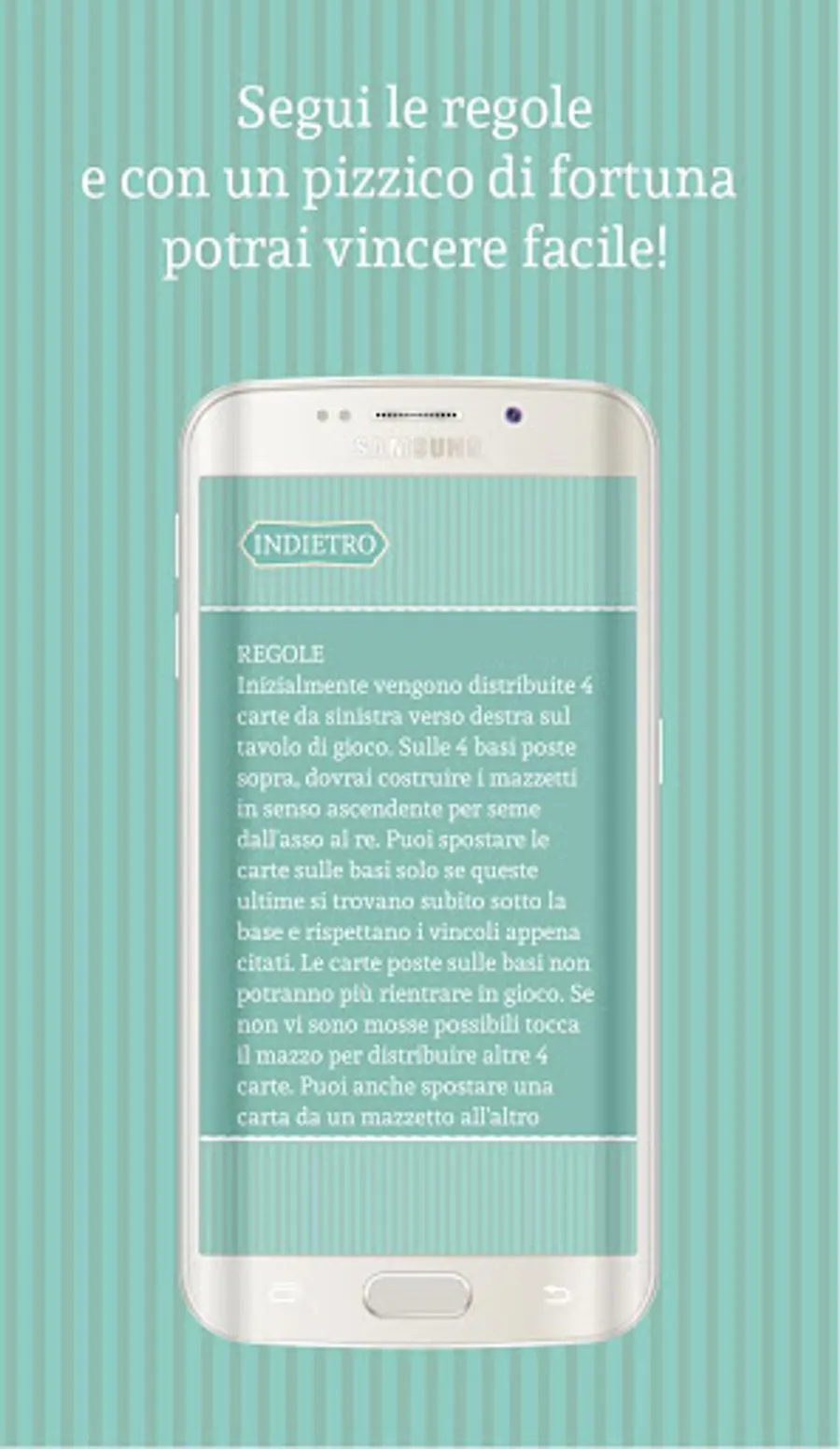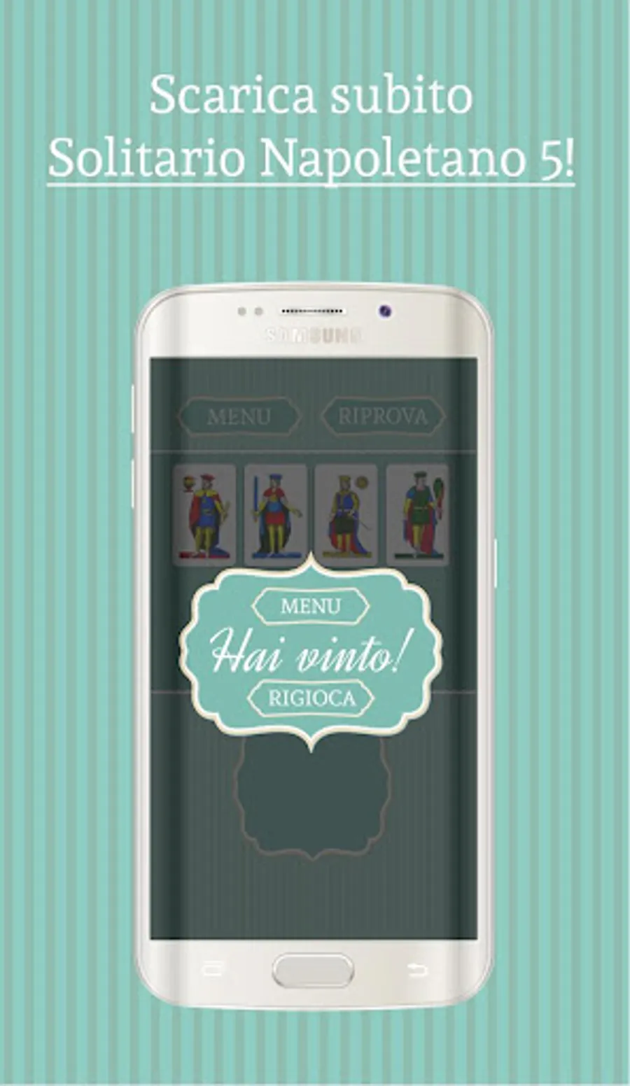 Solitaire 5 Neapolitan born in the footsteps of "Solitary Napoletano", "Solitaire Neapolitan 2", "Solitaire Napoletano 3" and "4 Napoletano Solitario" bringing with it the style and peculiarities that distinguish them. The controls adopted for this type of game is to drag and drop type and in our opinion are those that adapt more to the type of game. Given the huge demand of the other bunches, we decided to bring in this game Lombard and Sicilian cards, as well as Neapolitan. The goal is to build the foundations in ascending order respecting the seeds. The game rules are easily available in the main menu, and easy to understand. The chances of success of the solitary are always linked to luck / chance, but in this lonely the strategy adopted will affect a lot. For those who love to play solitaire games, this game can not miss on your device!