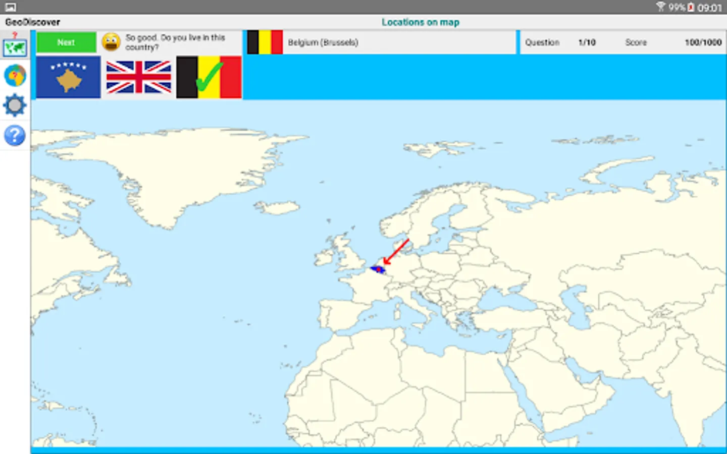 You can select the continents that you want to play with, but also the levels. At the beginners level, only large countries are considered, whereas the expert level includes small island states.