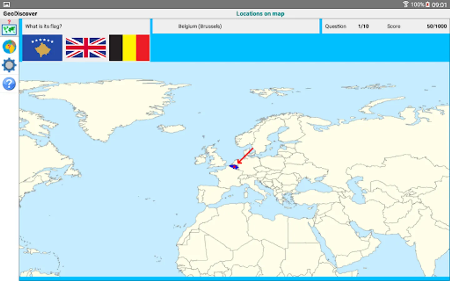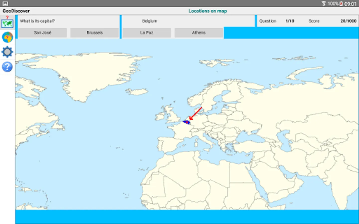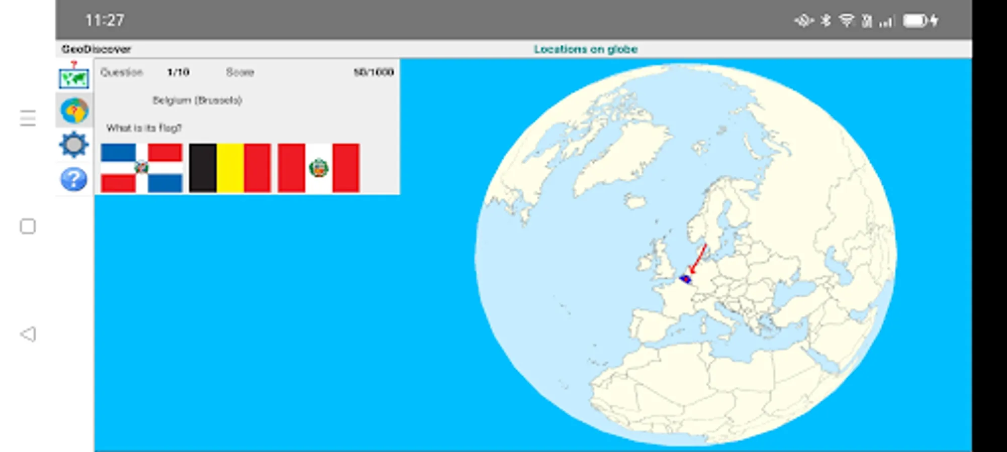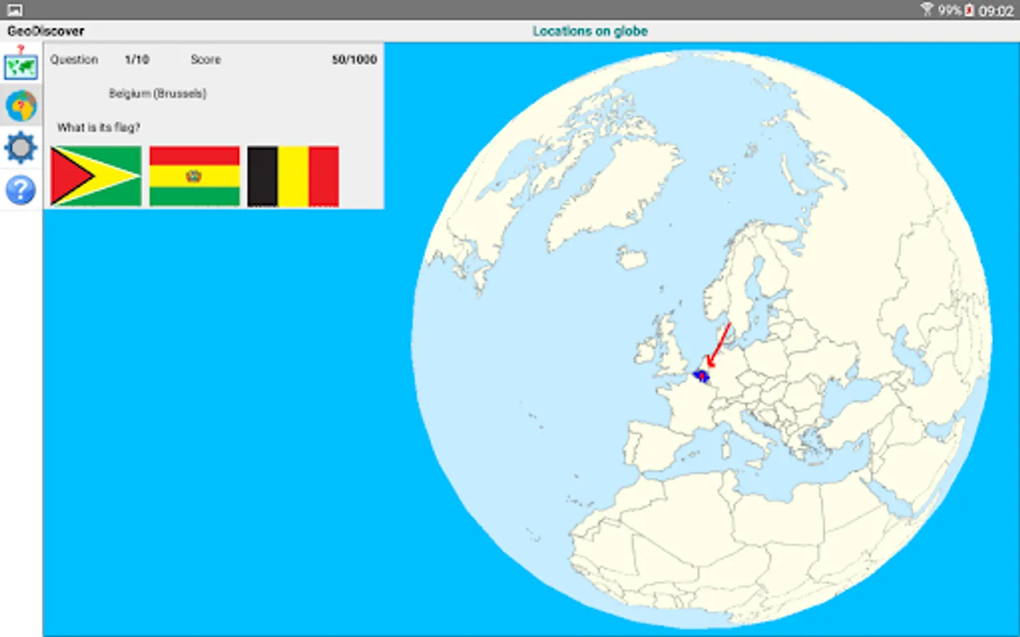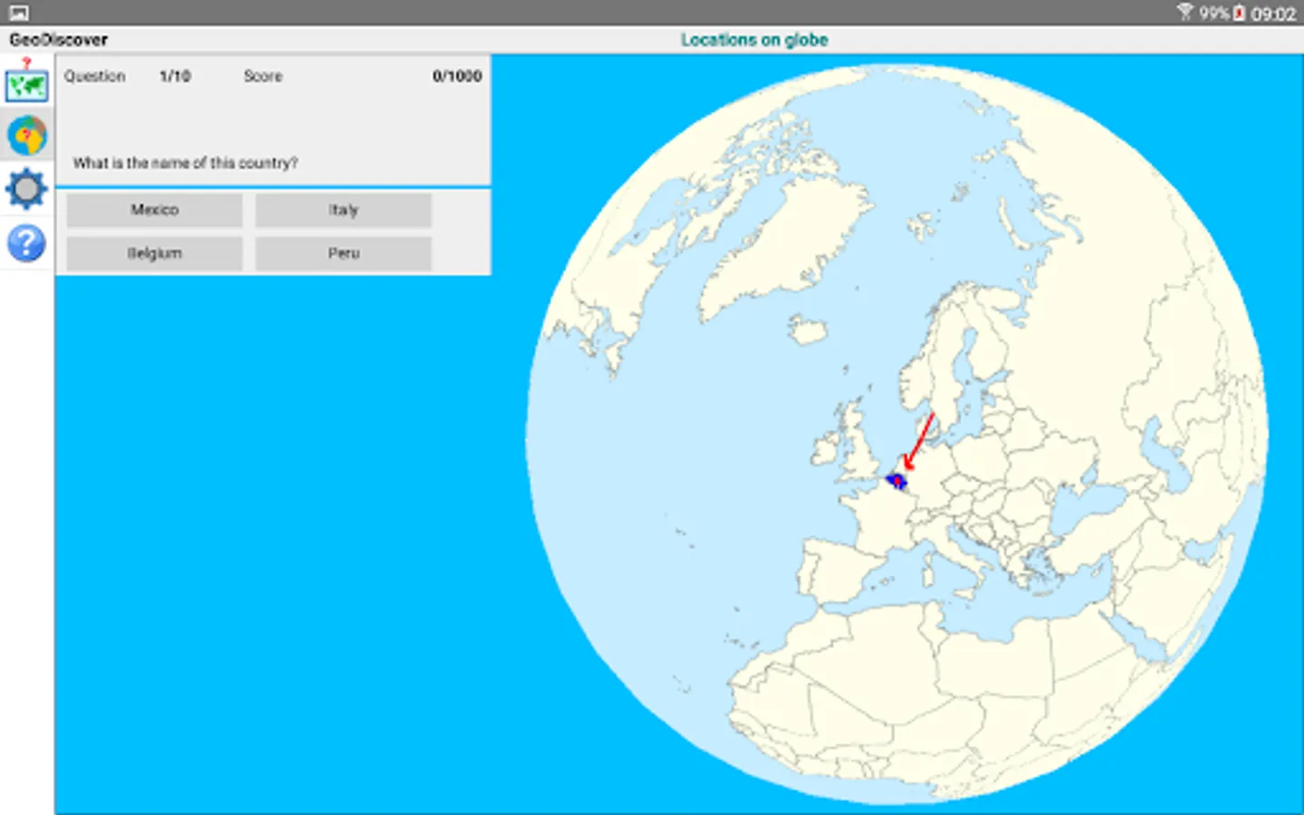 - Playing on a world map, on which the country to find is magnified and shown in the middle of map.