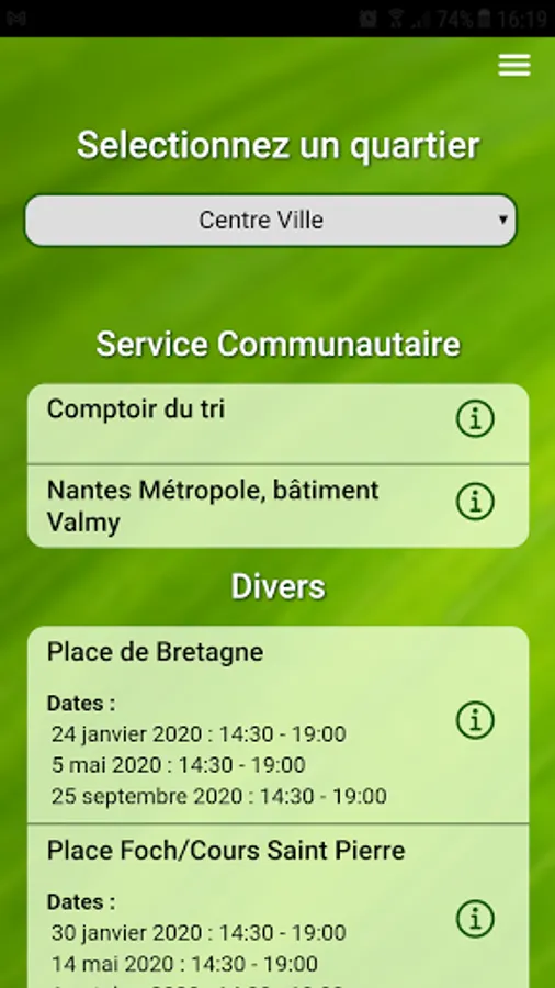- find the collection method and the day of collection at home (for Nantes residents search by street, excluding Nantes search by district).