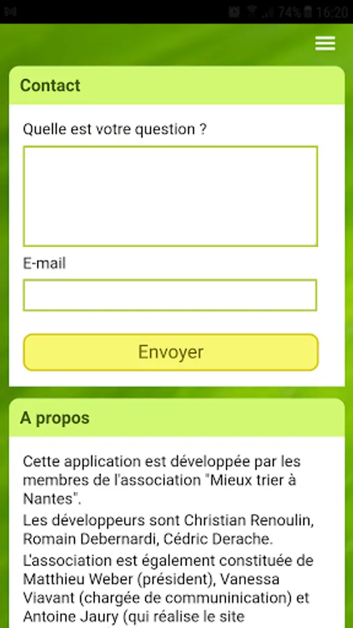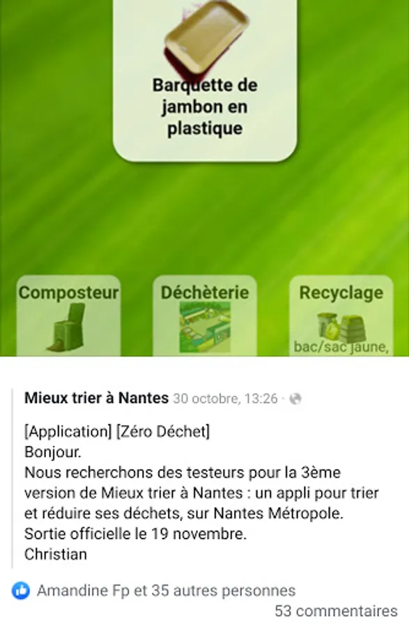“Mieux trier à Nantes” is an Android and iPhone application (free) and a site http://mieuxtrieranantes.fr (which presents the same content as the application) for the inhabitants of Nantes Métropole.