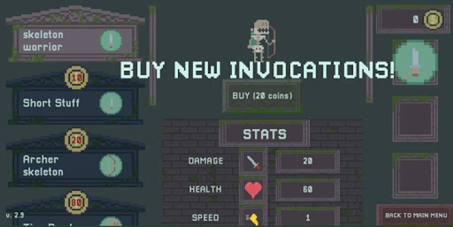 Visit Caronte's shop to learn new skeleton invocations in exchange for coins for the boatman, which you will earn by defeating his other disciples!