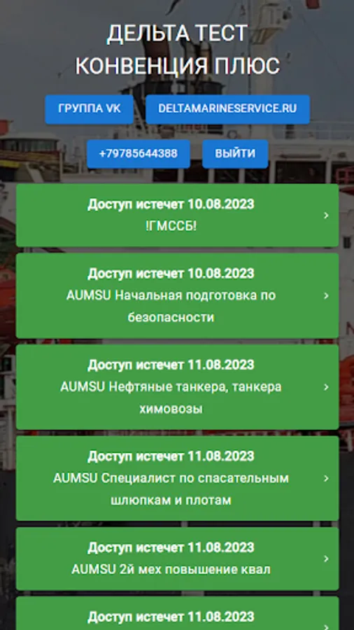 The "Delta test Convention Plus" application provides a database of questions and answers on various maritime positions in the qualification test system "Convention Plus".