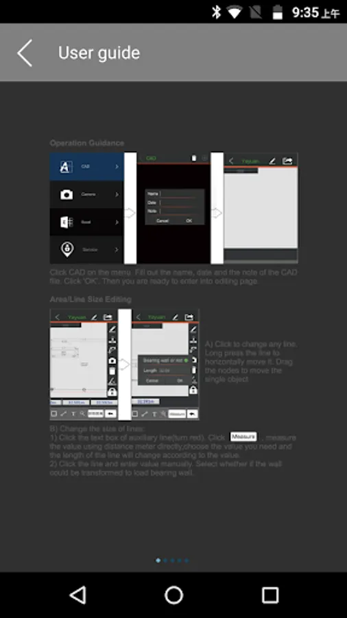 It has functions such as sketching up a floor plan,marking distance on onsite photo,recording data in Excel.It can draw CAD drawings to assist designers' work. It exports the drawing as photo,and PDF documents,and share with other.
