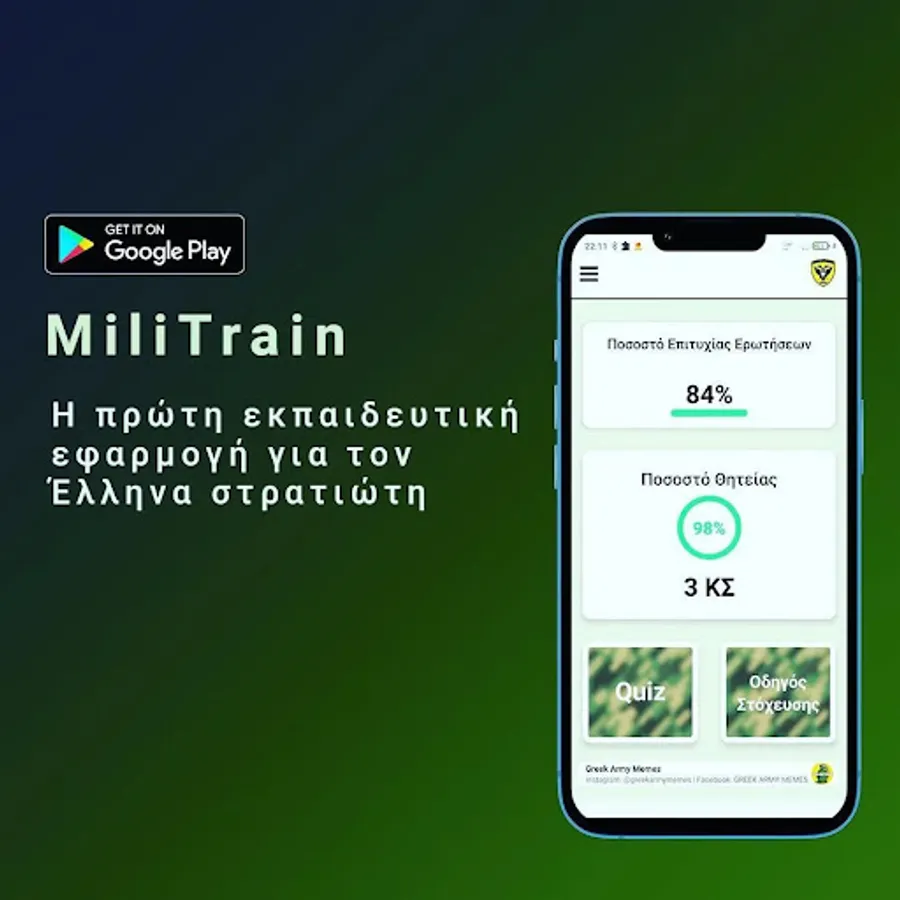 The purpose of MiliTrain is to help the Greek Soldier to practice his theoretical knowledge and to delve into the systems of the army (Armed and non-Armed).