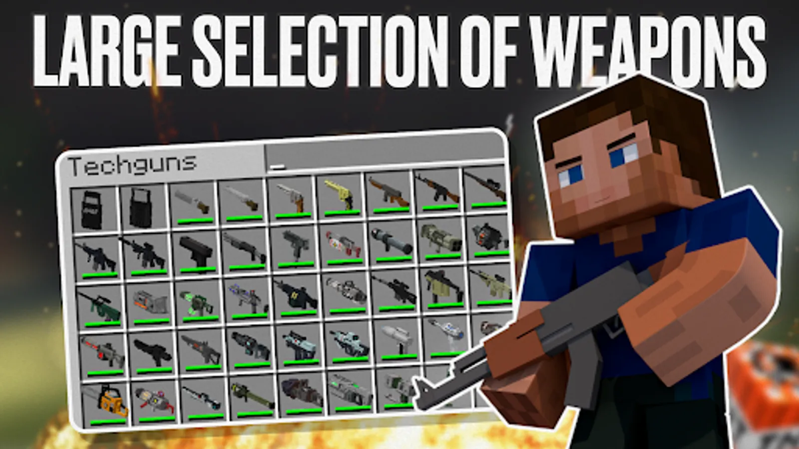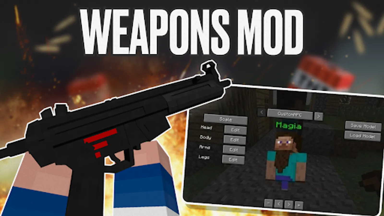 Weapons of addons include all kinds of firearms: pistols, shotguns, rifles and other guns. Each gun minecraft of mods individually is unique in its characteristics. For example, the submachine gun addons is a super high-speed gun, which is simply indispensable in a battle at close range. To defeat your enemy at long range, you'll need the addons sniper gun. This type of powerful weapon has increased accuracy in hitting the target. The cannon is capable of inflicting devastating damage from afar. But the highest degree of his skill to conduct close combat in Pocket Edition you will be able to show not only with guns.