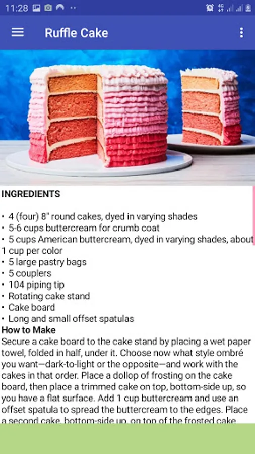 My app will also teach you how to fill lava cakes with the perfect amount of melted chocolate allowing the cake to erupt the moment it is laid hands on. It will help you make colorful fondant or basic butter-cream frosting to decorate your cakes. The perfect ganache, caramel and rosettes will now be possible to decorate your cake. This app also includes all the specifics needed to prepare the previously listed, as well as the latest trends in cake decoration and preparation. Not only will you be exposed to simple and less time consuming recipes for baking the cakes, but also tips on how to speed up the process, eliminating un-needed steps of preparation. You will also be taught how to keep the right proportions of ingredients, without the over or under use of any component - ensuring a well-balanced and exuberant taste to the desert. With the help of the detailed videos in our application, learn old-fashioned and slightly tailored recipes of cakes that will have a perfect savor and aroma, leaving you and your guests stunned.