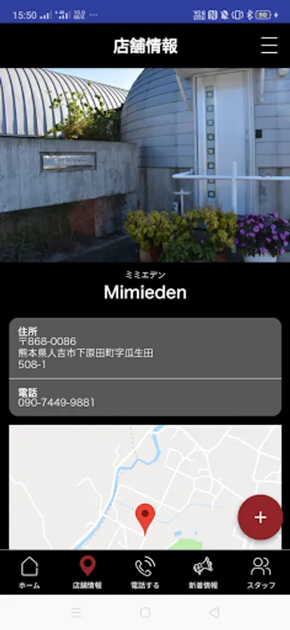 The map of the store is displayed and it is linked with the map app, so you can easily find it even when you visit the store for the first time.