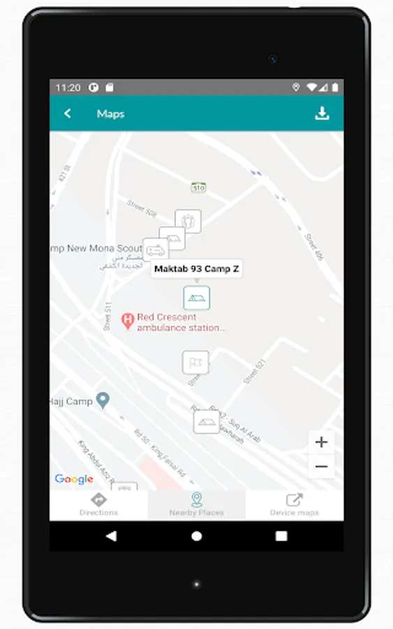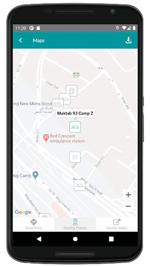 Mina Locator is a very useful App for pilgrims and volunteers. Through this App you can identify the route to different Camps (Maktabs), Train Stations, Mosques, Hospitals and other important locations in Mina with the reference of your current location.
