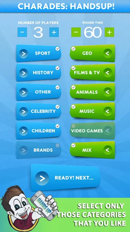 Set the round time as desired: 30, 60, 90 or 120 seconds!