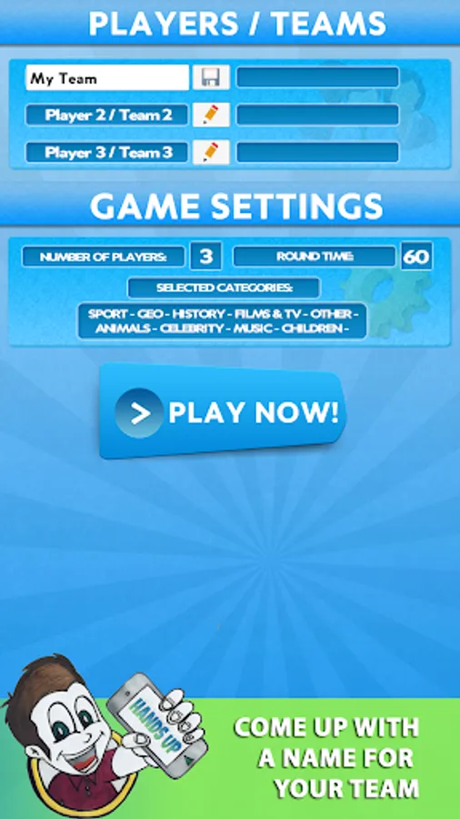 more than 4 people, install 3, 4 or 5 teams! Come up with the name of your team and score more points!