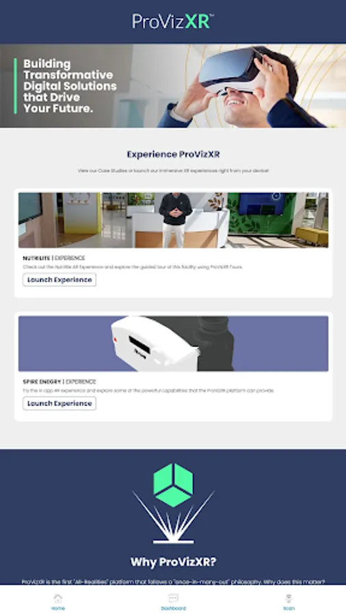 To view an experience created using ProVizXR, simply launch the app and scan a QR code.