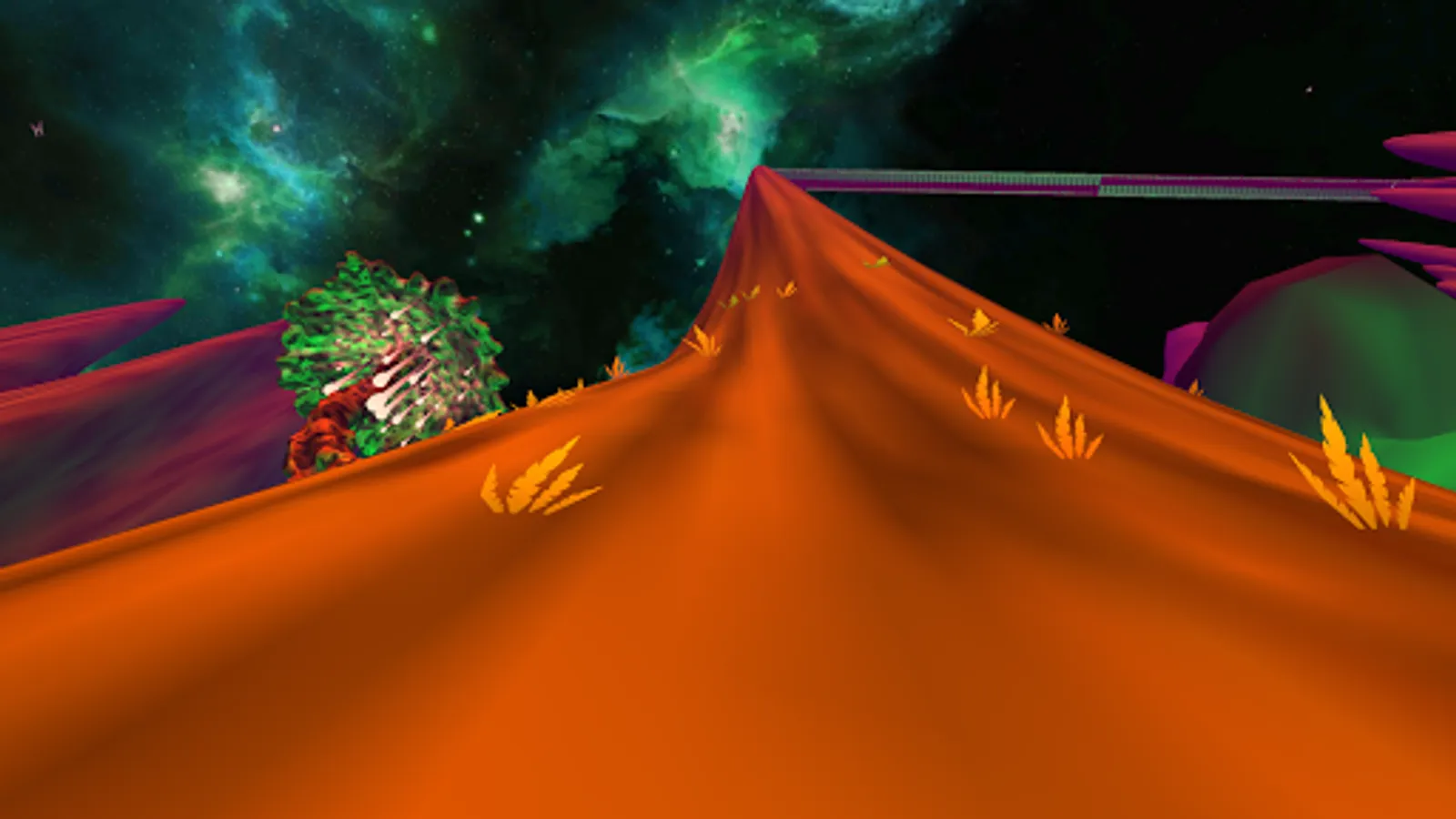 Dub World is a new way to experience and remix music. As you explore Dub World, travel through the fiery orbs to unleash new sounds and effects. Zoom to the peaks of the mountains to experience the low gravity effects of Dub World. Search and find the hidden sounds and effect zones. How you experience Dub World is all up to you. Click to start and stop walking and push the limits of where you can go and how you can change the sound experience. Dub World features 3D Binaural Audio creating a truly immersive and unique sonic experience. Find out what it is like to experience sound spatially as you travel the psychedelic landscape of Dub World.