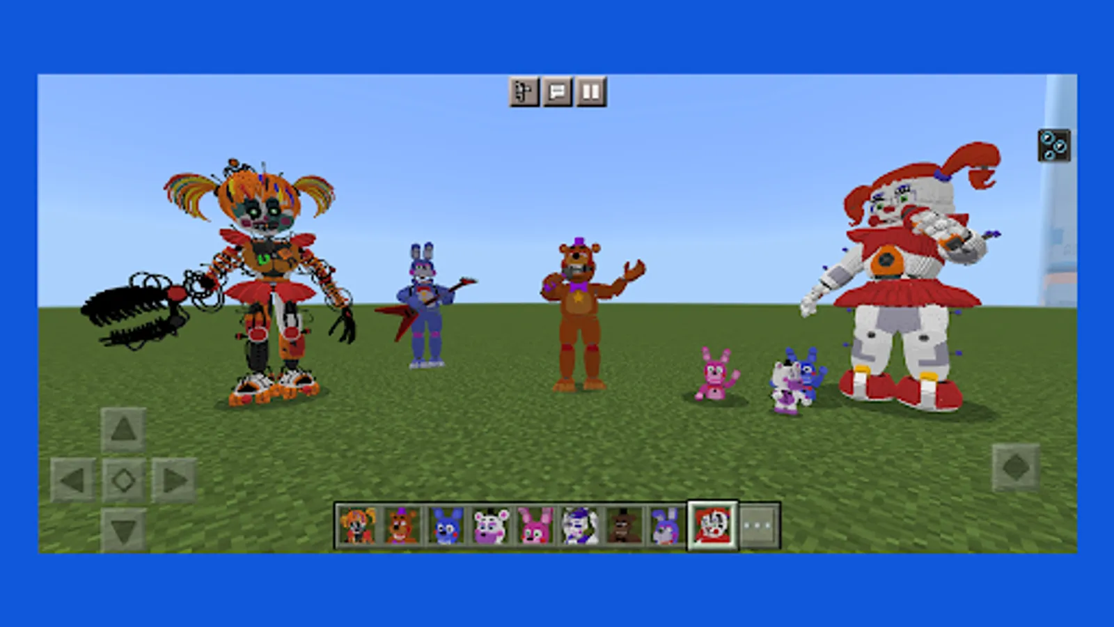 To add the FNAF Sister Location mod to Minecraft on your device, you need to go to the menu of our application, download the Five Nights at Freddy's Security Breach mod. Then install in Minecraft. After that, the add-on will appear in the virtual blocky world.