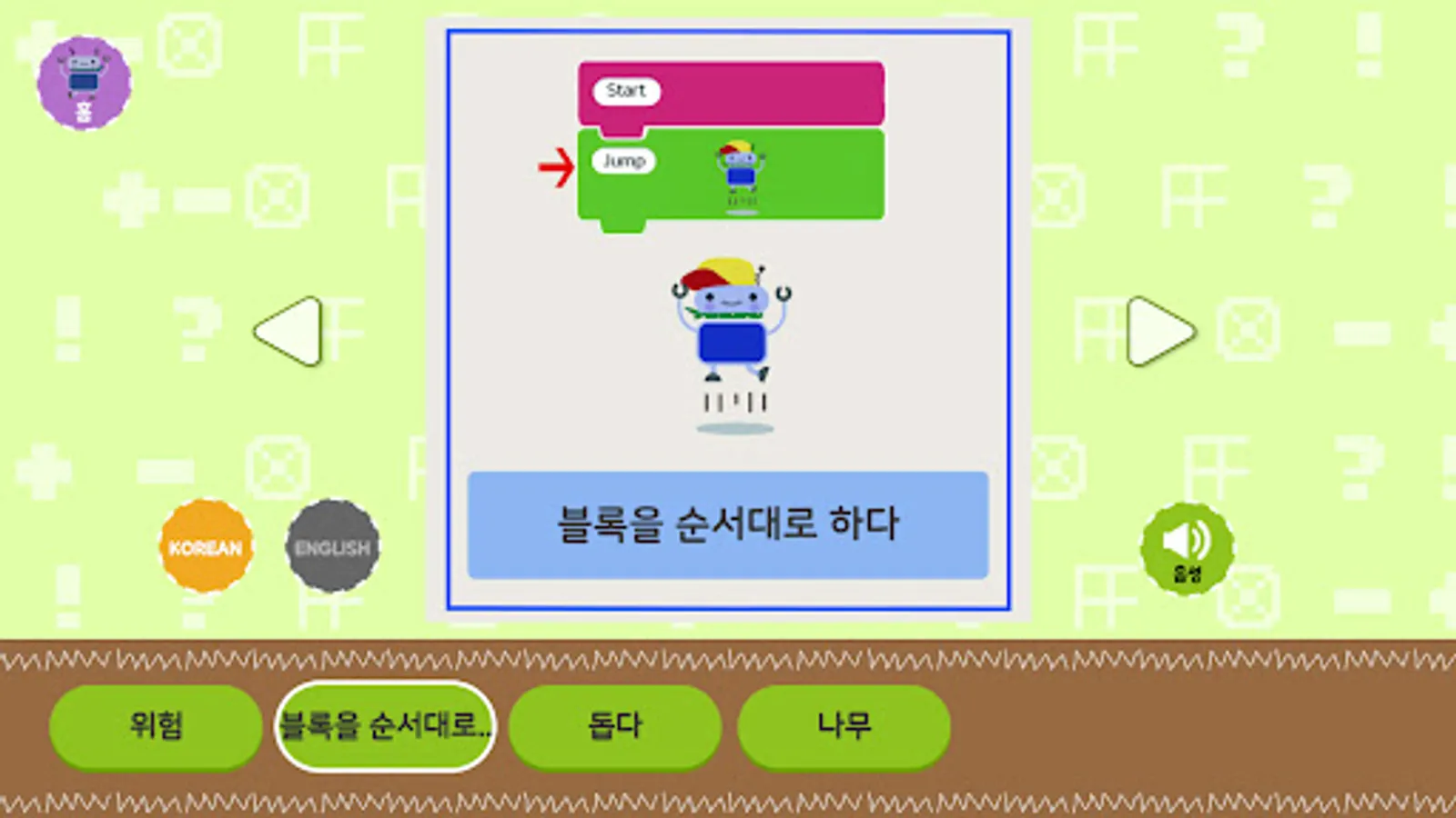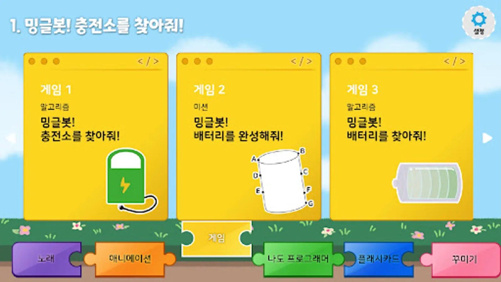 Minglebot AI Developer app is an interactive app that gamifies the principles of algorithms and programming based on topics such as navigating in alphabetical order so that Minglebot can find a bridge to cross after charging the battery.