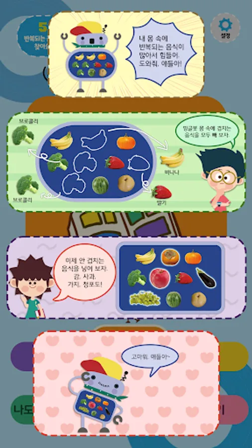 Minglebot AI Junior app is gamification that can improve computational thinking and experience that compression is necessary to store repetitive information in a limited space based on topics such as finding repetitive food. It is an interactive app that gamifies the principles and concepts of pattern recognition, decomposition, abstraction, algorithm, debugging, application, and application, which are the concepts of computational thinking.