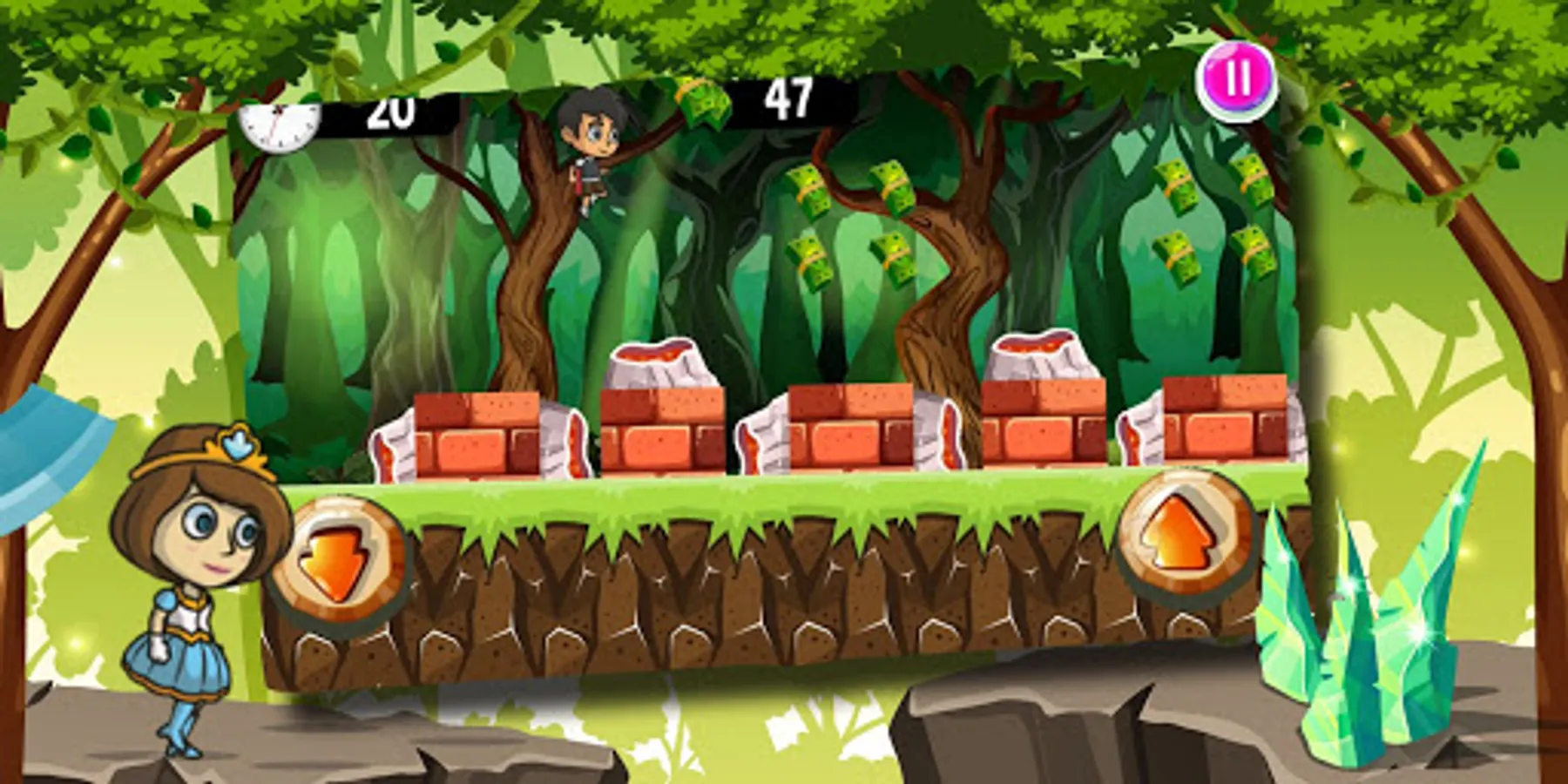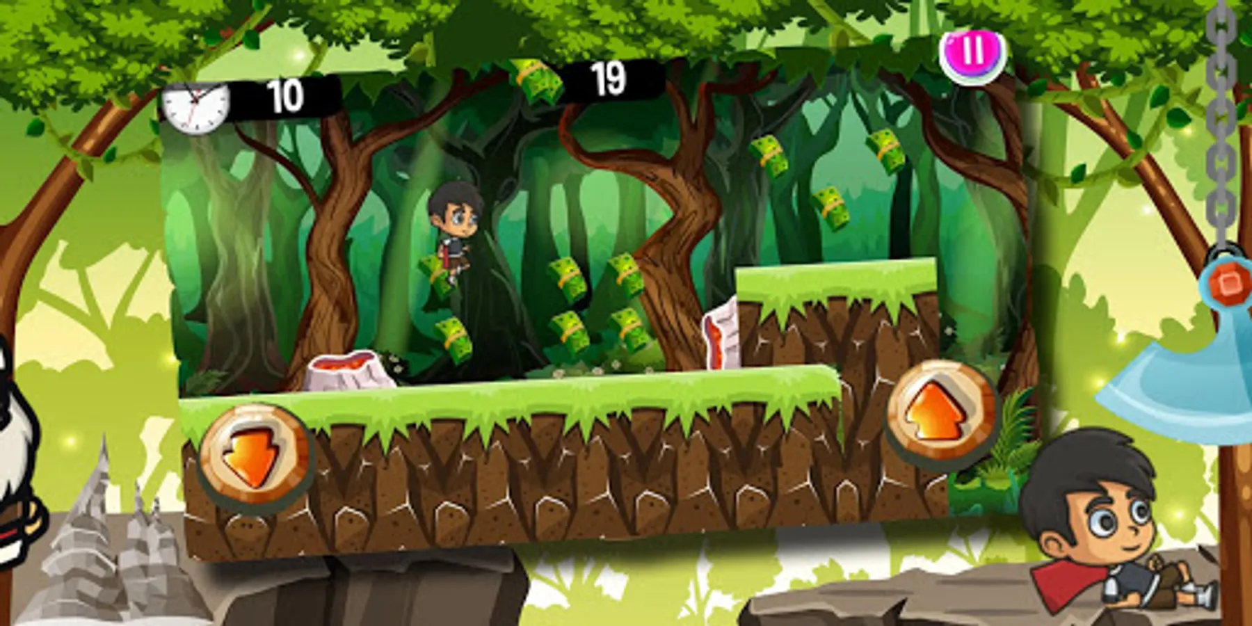 Running and jumping adventure games: Click the left button for the slide down and click the right button for jump. Collect cash, unlock new characters, and see how far you can run!