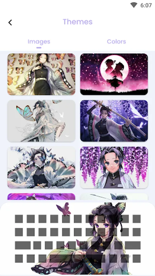 Shinobu Kocho keyboard Theme comes for your android phone with very cool features and of course it's free and offline.