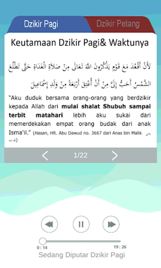 This application was created to facilitate reading and memorizing the practice of dhikr morning dusk.
