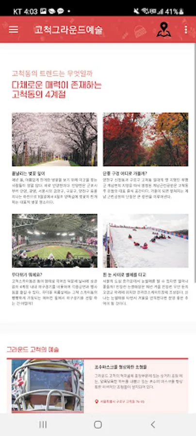 You can easily and conveniently view information on Gocheok-dong restaurants and entertainment facilities, traffic information, and Gocheok Sky Dome.