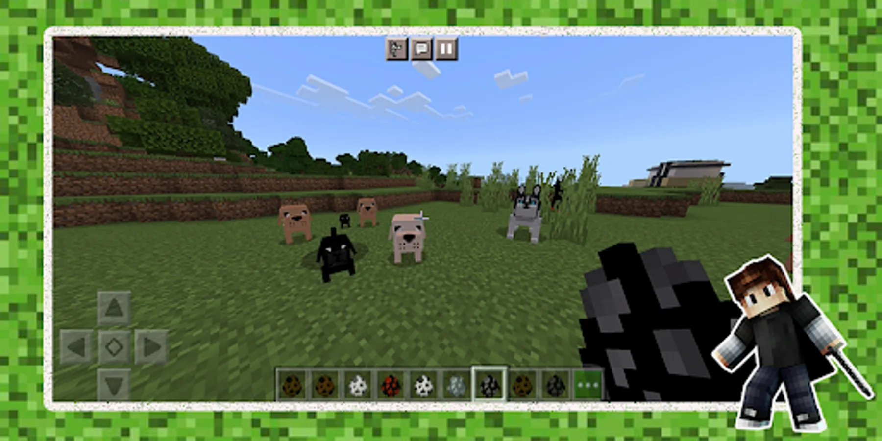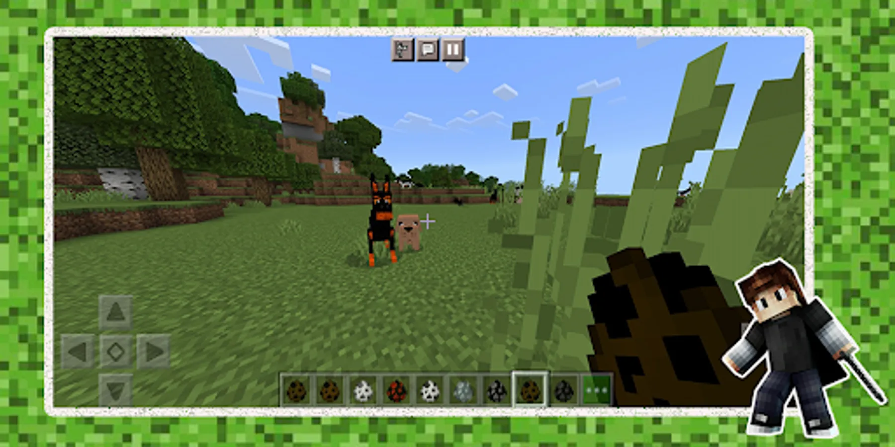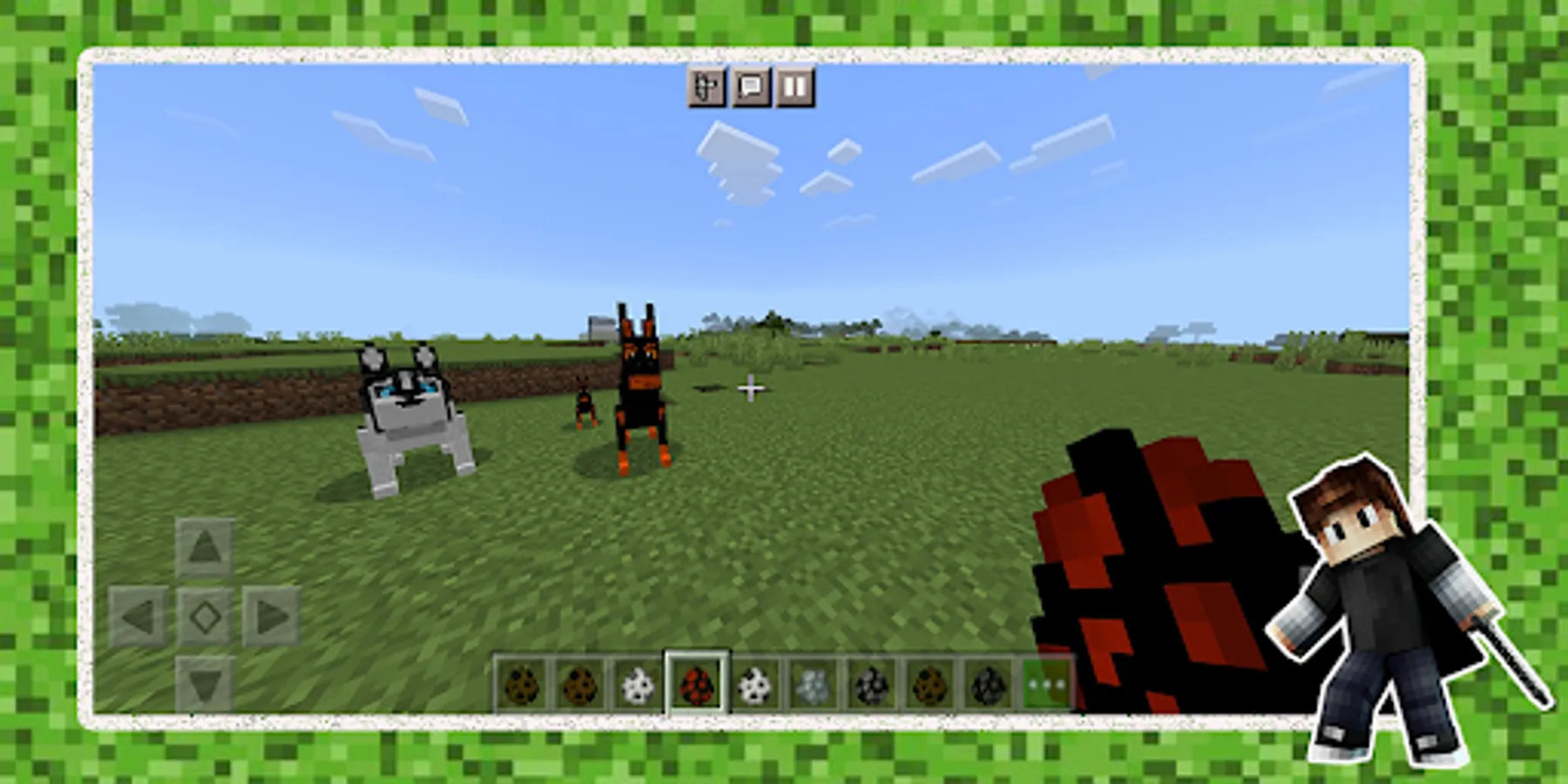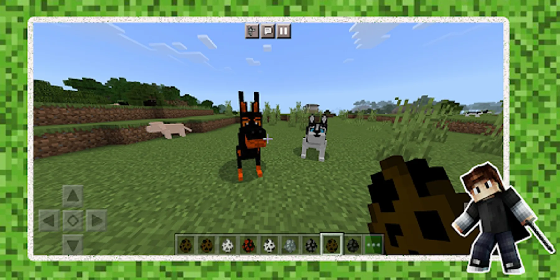 🟢 In this dogcraft application, you can download popular doglife Minecraft addons for your phone and tablet with the extension .mcaddon, .mcworld and .mcpack where the game will be dogs or wolf games. If you want new animals in Minecraft, such as doggy or pets, then our dog games application for MCPE is what you need. In it you will find addon the amazing doglife and pet game. What is Mod, you ask? MOD is an addition to the game. An addon, for example, dogcraft for pet game, is designed to change the existing features of the doggy games or increase its functions. Depending on the chosen mod, be it dogs or wolf games in Minecraft, the player may have new pets, food, and even a team. MCPE can be compared to a universe in which you can build worlds of various sizes.