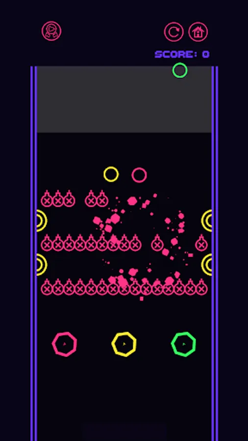 Work your way through 36 challenging levels. Strategically drop bouncing balls to hit three goals and move onto the next level! But watch out! Various moving, bouncing, and exploding hazards make finding the correct time and location to drop a challenge.