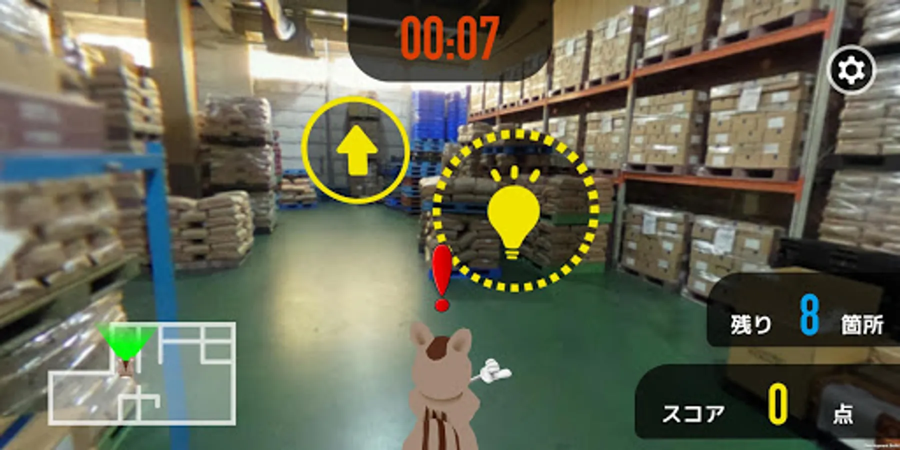 360度カメラで撮影した倉庫内のステージ上で、注意ポイントを探し出すことで、学習をすることができます。