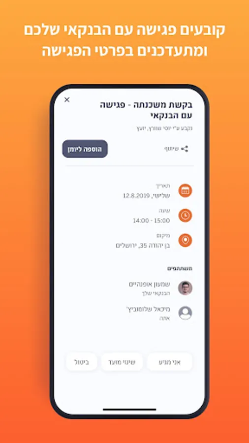 * Coordinating meetings with the mortgage experts of Mizrahi Tefahot Bank